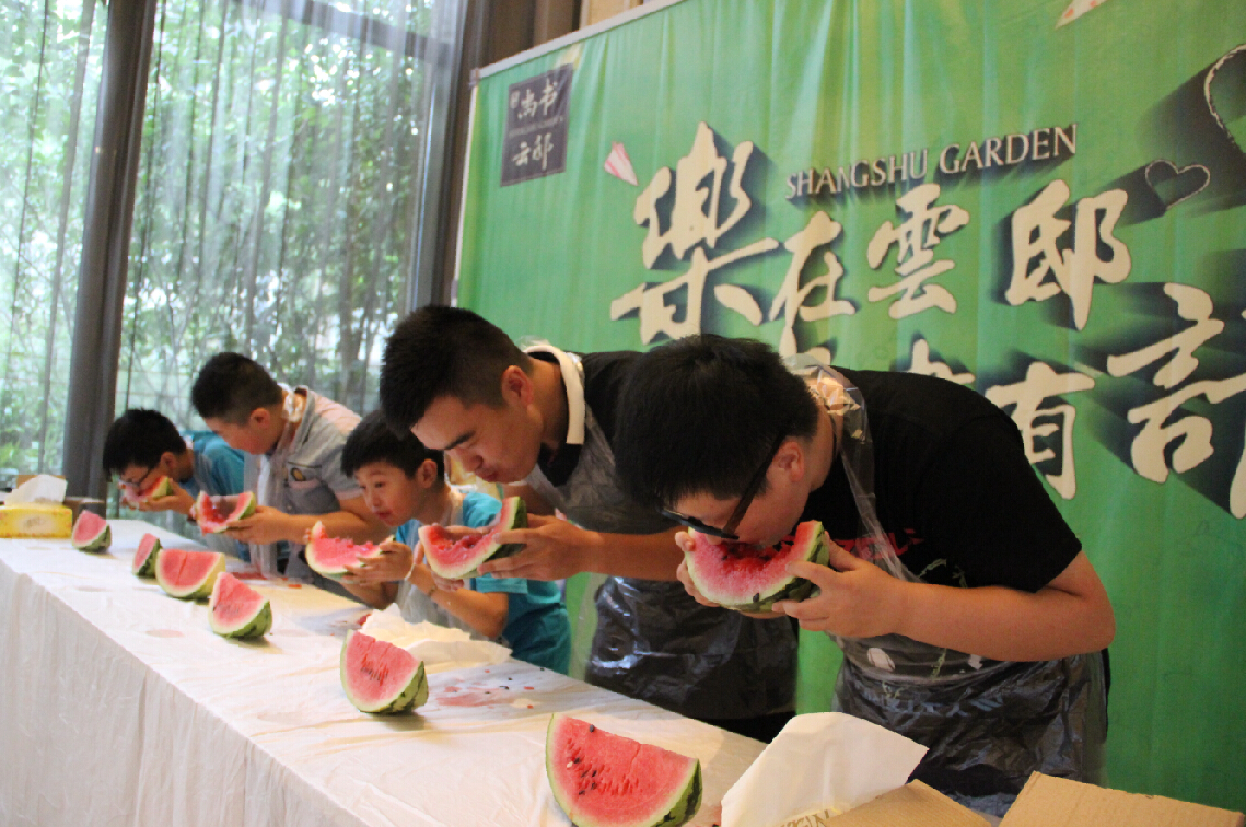 為進一步提升項目知名度,增加前期蓄水客戶與項目之間的粘性,吸引新客戶到訪,8月15日,愛濤置業公司尚書云邸項目在營銷中心精心舉辦了豐盛的“啃秋”美食節?;顒蝇F場定點派送西瓜,客戶簽到即可領取水果拼盤,參加“啃秋王”吃西瓜大比拼并贏取豐厚獎品。本次活動吸引了200組客戶參加,其中新客戶21組。到訪客戶在開懷享受各式水果的同時,也更加關注項目情況,對開盤時間、開盤價格充滿期待。