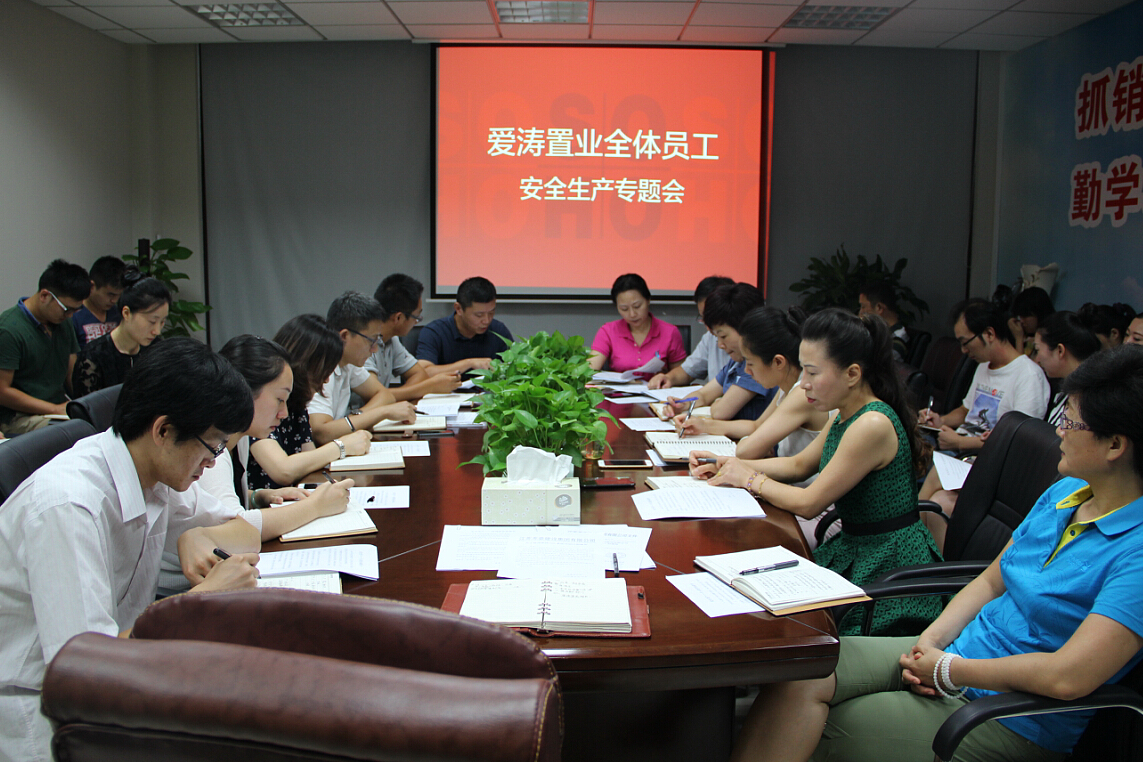 8月27日下午,愛濤置業(yè)公司安全檢查小組召開關(guān)于進(jìn)一步加強(qiáng)安全生產(chǎn)工作的專題會(huì)。會(huì)議認(rèn)真?zhèn)鬟_(dá)學(xué)習(xí)了控股集團(tuán)、建設(shè)集團(tuán)下發(fā)的關(guān)于進(jìn)一步加強(qiáng)安全生產(chǎn)工作的通知要求,并簽署了安全生產(chǎn)管理責(zé)任承諾書和安全生產(chǎn)個(gè)人責(zé)任承諾書。愛濤置業(yè)公司總經(jīng)理及安全生產(chǎn)檢查小組各成員分別就分管區(qū)域擬定了近期計(jì)劃和工作部署,會(huì)議針對安全生產(chǎn)、安全檢查、安全責(zé)任等,要求從總經(jīng)理到各項(xiàng)目、各部門、各專業(yè)板塊以及各具體執(zhí)行人員,形成逐級落實(shí)、層層負(fù)責(zé)的體系,以“零容忍”的態(tài)度,讓安全生產(chǎn)意識(shí)扎根每位員工心中,真正形成長效機(jī)制,通過自檢、互檢、限期整改等多種方式,堅(jiān)決防范和遏制安全事故。
